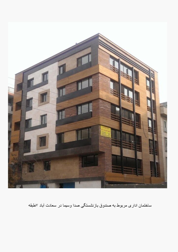ساختمان اداری صندوق بازنشستگی صدا و سیما در سعادت آباد، پروژه ای 7 طبقه با اجرای اصولی، نمای مدرن و رعایت استانداردهای فنی و ایمنی